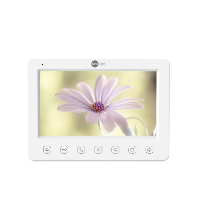 Видеодомофон NeoLight KAPPA оснащён цветным дисплеем с хорошим разрешением, способным воспроизводить детальное изображение. На верхней панели есть кнопки сенсорного управления. Настройки разных параметров производятся через меню экрана. Есть возможность назначения полифонических мелодий для каждой вызывной панели. Для руководства электрозамком предусмотрена отдельная кнопка.