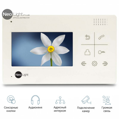 Видеодомофон NeoLight Delta — изящный представитель охранных систем. Тонкий пластиковый корпус и цвет белого жемчуга идеально подходят ценителям оригинальной простоты. Несмотря на небольшие габариты, устройство отлично справляется со своим основным назначением. Оно позволяет быть осведомлённым о происходящем за дверью и общаться с пришедшим человеком по громкой связи, не покидая помещения.