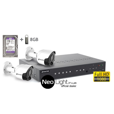 Комплект BALTER – это надежное решение «под ключ» для большинства задач мониторинга. «Распаковка – монтаж – подключение»: этот комплект включает в себя все необходимое для построения системи видеонаблюдения: 2 шт 2MP видеокамеры, видеорегистратор с установленным и проинсталлированным жестким диском 1ТБ, который уже настроен на запись в лучшем качестве по детектору движения. Все компоненты были тщательно подобраны, и с помощью всех необходимых кабелей можно смонтировать систему, не прибегая помощи специалиста. Для наблюдения нет необходимости подключать монитор, это можно сделать с помощью мобильного телефона или планшета.