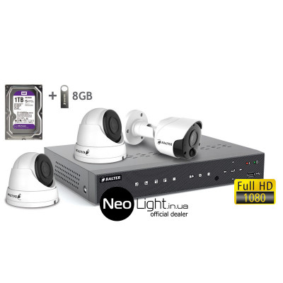 Комплект BALTER – это надежное решение «под ключ» для большинства задач мониторинга. «Распаковка – монтаж – подключение»: этот комплект включает в себя все необходимое для построения системи видеонаблюдения: 3 шт 2MP видеокамеры, видеорегистратор с установленным и проинсталлированным жестким диском 1ТБ, который уже настроен на запись в лучшем качестве по детектору движения. Все компоненты были тщательно подобраны, и с помощью всех необходимых кабелей можно смонтировать систему, не прибегая помощи специалиста. Для наблюдения нет необходимости подключать монитор, это можно сделать с помощью мобильного телефона или планшета.