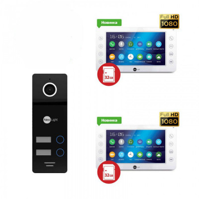 Комплект состоит из:- видеодомофон NeoLight Kappa+ HD - 2шт.
